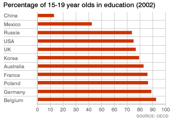 The UK fares relatively badly in getting students to "stay on" in education. Compulsory leaving ages are higher in some countries - e.g. 18 in Belgium.