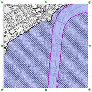 ![]() | Wet Westminster The Environment Agency's flood map reveals areas (shaded hatched blue) that would be liable to flood if it weren't for defences. Entering the postcode for the Houses of Parliament, SW1A 0AA, reveals that much of Westminster would be at risk if it weren't for the extensive Thames defences (in pink). All images copyright The Environment Agency |