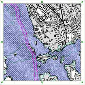 ![]() | Soggy stadium Cardiff's Millennium Stadium lies close to the River Taff, which flows into the sea at Cardiff Bay barely a mile downstream. Again the city has a network of flood defences in place (marked in pink). Areas shown in pale blue are subject to flooding risk only in extreme circumstances. |