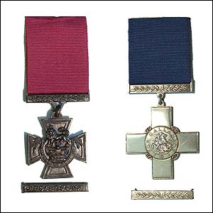 ![]() | The highest honour The Victoria Cross (left) and the George Cross are the nation's highest award for extreme bravery. The VC, inscribed "For valour", is given for an act in the presence of the enemy. Its equal, the GC, is awarded in other circumstances, and may be given to civilians. Malta was collectively given the George Cross for gallantry in WWII. |