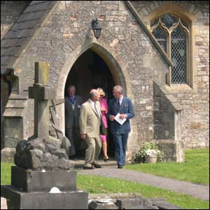 ![]() | Church stop The visit continued with a trip to the village church. Villagers armed with all sizes and shapes of cameras lined the walls and streets, trying to get the best possible pictures to keep as souvenirs of the day. |