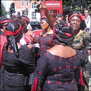 ![]() | Relatives of victim After observing the silence, Judith Ofori, 46, sang outside the church with her five cousins. The women, all originally from Ghana, lost their cousin Gladys Windowa in the bus bomb. Mrs Ofori said: "We are all very shocked and very numb. She was very hardworking and was a mother-of-two. She was very kind and always put other people first |