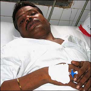 ![]() | Vijay Mistri When the explosion took place, I was on the platform. Some friends got on the train to Borivili, which moved away from the platform. Then suddenly there was a big explosion and the roof of the compartment just went off. My friends who were in the compartment, one lost his leg while the other lost his life. I was standing at the station but the impact was such that I was thrown off my feet and injured my hand and leg. |