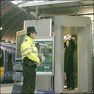 ![]() | Scanner Trial The first trial of a body scanner that can detect explosives is being launched at Paddington station, west London, in a bid to boost security for rail passengers. The four-week trial will cover people travelling to Heathrow airport. BBC News spoke to people at the station to hear their views on the use of new security measures. |
