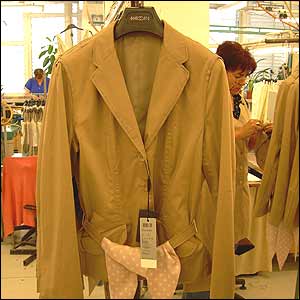 ![]() | Hanging goods Once the goods are checked for quality, they are shipped on hangers so they can be put straight onto the shop floor. ModaTim even provides the bar-coded price tags. It is this level of service the firm sees as vital if it is to withstand tough competition from Asian producers in fast-growing markets such as China and India. |