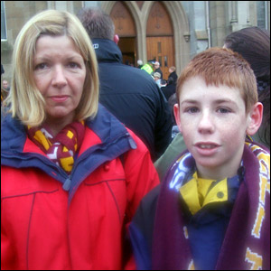 ![]() | Inspiration to children Michael, 15, from Bellshill, was at the game when O'Donnell collapsed. His mother Lorraine was outside. Michael said: "I thought he was a good player. He tried his hardest and was a good captain. I was gutted and upset." Lorraine added: "Phil O'Donnell was a great inspiration to children." |