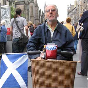 ![]() | Special trip Richard Baillie, 52, from Edinburgh, who attached a Saltire to his wheelchair for the parade, said he had made a special trip to cheer on his Scottish heroes. He said: "I am a very proud Scotsman today. "I am here to see Chris Hoy as he has done very well at the Olympics." |