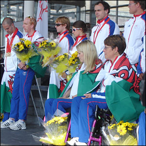Twenty-four of the 31 Welsh Paralympic athletes attended the ceremony on the steps of the Senedd at Cardiff Bay.