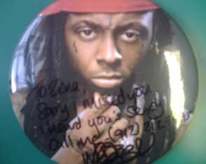 My very own Lil' Wayne badge with personal message on.... 'Sorry I missed you. I heard you's sexy.. Call me.. blah blah....