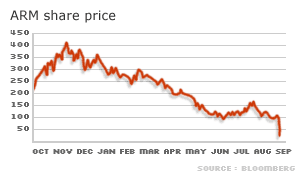 | Wednesday, 2 October, 2002, 20:29 GMT 21:29 UK Shares in UK chip designer collapse ![]() UK chip designer Arm Holdings has dealt a blow to the fragile technology market, warning of a halving in profits. Shares in the group slumped more than 60% as it blamed worsening market conditions for the fall in earnings for the July to September period, and said the future remained "unpredictable". "The semiconductor industry is experiencing its worst ever downturn," chief executive Warren East added. But the company said it had no immediate plans to cut jobs and suggested its growth prospects were healthy as a number of third-party companies were still choosing Arm as a partner for new projects. Bleak forecast Analysts were quick to reduce their expectations for Arm, which had until now met market profit forecast for more than four years. Investment bank Morgan Stanley said: "Given our guarded outlook for the rest of the semiconductor industry, we believe that visibility for Arm is unlikely to improve until someway through the first half of 2003." Arm itself said it did not expect "any significant upturn in business activity before next year". The company said it expected pre-tax profits for the three months to 30 September to come in at around �8m ($12.6m), compared with �16.2m in the previous quarter. The group said persistent difficult market conditions made it difficult to predict the timing on current and future projects. Cuts Morgan Stanley cut its share price target for Arm by almost a half on the back of the disappointing update, from 210p to 110p. But investors had already voted with their feet, with Arm shares closing down 79.5p, or 63%, at 46.75p. Analysts said investors were currently looking very closely at company balance sheets and that Arm's warning had hit sentiment badly. Arm's chief executive told reporters after putting out the warning that the company had "no immediate plans" to cut jobs. | See also: 04 Sep 02 | Business 15 Apr 02 | Business 28 Jan 02 | Business 18 Jul 01 | Business 12 Jun 01 | Science/Nature 11 Apr 01 | Business 22 Mar 01 | Business 08 Mar 01 | Business Top Business stories now: Links to more Business stories are at the foot of the page. | |||||||||||||||||||||||||||||||||||||||||||||||||||||||||||||||||||||||||||||||||||||||||||||||||||||||||||||||||||||||||||||||||||||||||||||