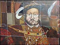 The picture of Henry VIII is based on a portrait by Bavarian painter Holbein the Younger.