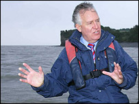 | Welsh Secretary Peter Hain took to the water near Lavernock Point on Monday.