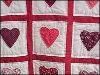 They pause to pick up new commissions for work from volunteer tutors, debate stitching patterns, pore over complex triangle designs, return completed quilt pieces and open letters from satisfied customers.