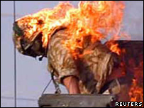 UK soldiers have described the moment when they were forced to flee their burning armoured vehicle during unrest in Basra, southern Iraq, on Monday. Sgt George Long, of the Staffordshire Regiment, said part of his face was on fire when he fled the Warrior vehicle.