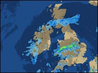 The Met Office said the heavy rain affecting Wales, the Midlands and northern England was moving northwards into southern Scotland and the Borders region.