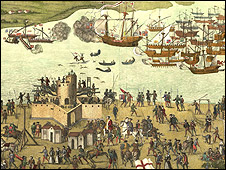 | The Cowdray Engraving of English and French ships at war in the Solent