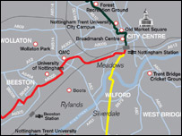 Phase two involves construction of two routes - Line Two (city to Clifton) and Line Three (city to Chilwell via Beeston).