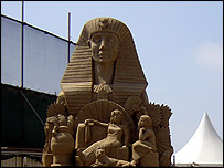 Nearly 10,000 tons of specially-imported sand was used to create more than 150 sculptures of pyramids, mummies and Egyptian gods at Brighton Marina.