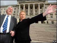 | Rhodri Morgan praised the effects of devolution on his visit to Stormont.