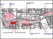 | Map of the planned revamp of Dunfermline town centre