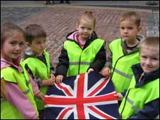 The four athletes emerged from Edinburgh castle to huge applause from a crowd of waiting well-wishers.