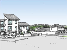 A �60m retail, office and housing scheme for Caerphilly county has been unveiled. The plans include 500 supermarket jobs at a new Tesco Extra store on the site of an old steel foundry at Risca. The proposals, which need planning permission from Caerphilly Council, also include 200 flats, offices and a 50-bed care home. South Wales-based developer the Bird Group said it was an "exciting opportunity" for the town. Director Brian Bird said the plans would act as a catalyst for the further development of the town. "The scheme, as well as providing the opportunity for quality employment, will improve the amenities of the town with large open areas of grassland and a river walkway which will provide public access to the Ebbw and the views beyond for the first time." 'Commercial stature' The proposals over five acres east of the river aim to create a landmark entrance to the town. The homes consist of 81 apartments on Mill Street and 132 apartments in Commercial Street, many of them for first-time buyers, the developer said.  The plans are being hailed as an "exciting opportunity" for Risca |