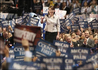 Kandidatja për zëvendës presidente Sarah Palin mbajti fjalimin e saj të parë në konventën e partisë në Shën Pal, Minnesota.