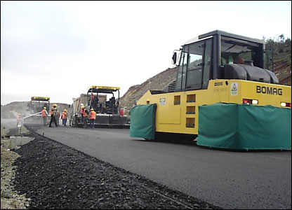 Qindra mjete të rënda janë të angazhuara në shtrimin e rrugëve, ku punohet me segmente.