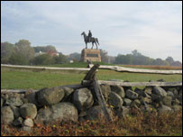 Beteja e Getisburgut që u zhvillua më 1-3 korrik 1863 ishte beteja me numrin më të madh të viktimave në Luftën Civile amerikane - 46 deri ne 51 mijë syresh - dhe shumë historianë mendojnë se ishte pika kthesë që i dha fitoren Bashkimit të veriut kundër Kofederatës së jugut. Unë e vizitova këtë fushë historike ndërsa autobusi i BBC-së ndaloi në qytetin e vogël amerikan Getisburg, në Pensilvani. Fusha e Getisburgut është ende një vend peligrinazhi, mounumente e flamuj të kofederatës janë vendosur atje ku janë vrarë ushtarë të konfederatës, dhe flamurë të bashkimit janë të shpërndarë andje këndej nëpër fushë, në bregoren e varrezave që ishte epiqendra e luftës kundër skllavërisë. Fusha të jep një ndjenjë krejt të veçantë. Sheh gurë të vegjël me flamurin e konfederatës aje ku kanë rënë ushtarë të konfederatës dhe fare afër, në një distancë që i lejontë madje edhe të flisnin me njëri-tjetrin, sheh gurë të ngjashëm por me flamurin e bashkimit. Fjalimi i Getisburgut
