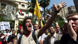 متظاهرون مصريون امام السفارة السعودية في القاهرة اعتراضا على اعتقال الجيزاوي