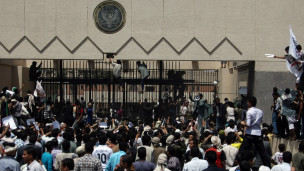 ويقول مراسل بي بي سي إن الوضع لا يزال متوترا في محيط السفارة وهناك أعداد أخرى تحاول الانضمام للمتظاهرين لاقتحام السفارة مجددا.