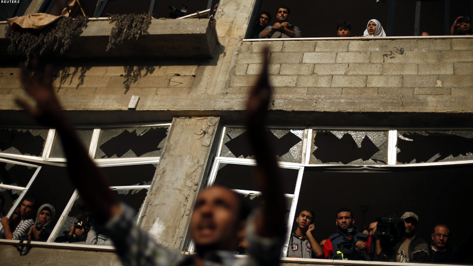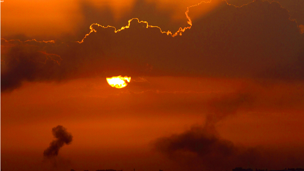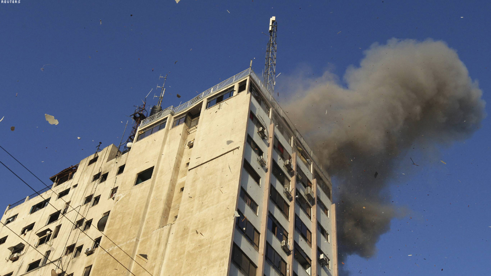 • غزة - الدخان يرتفع من مقر تلفزيون الاقصى التابع لحركة حماس بعد ان قصفه الاسرائيليون.
