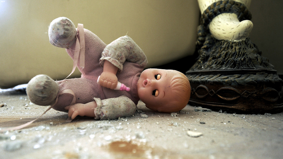 أشدود - دمية في منزل تضرر جراء اصابته بصاروخ قادم من غزة.