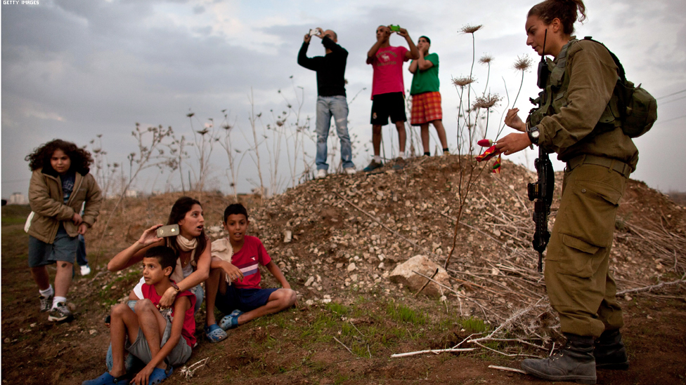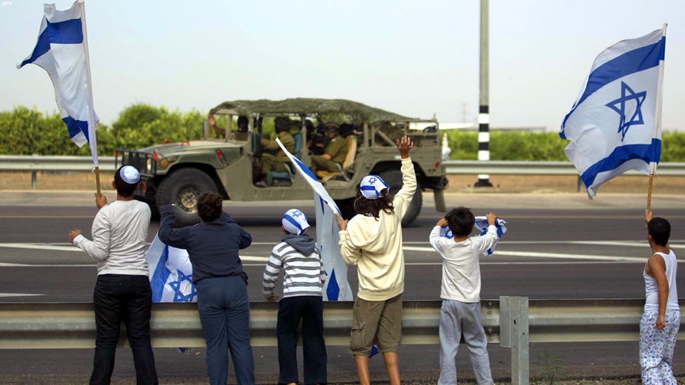أوفاكيم، جنوبي اسرائيل - اسرائيليون يحيون جنودهم المتوجهين الى الحدود مع قطاع غزة.