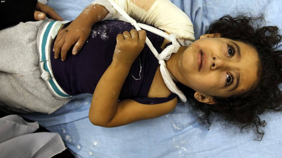 بيت لاهيا، غزة - طفلة اصيبت في غارة اسرائيلية ترقد في المستشفى.