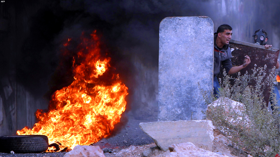 جنين - متظاهر يواجه الشرطة الاسرائيلية.
