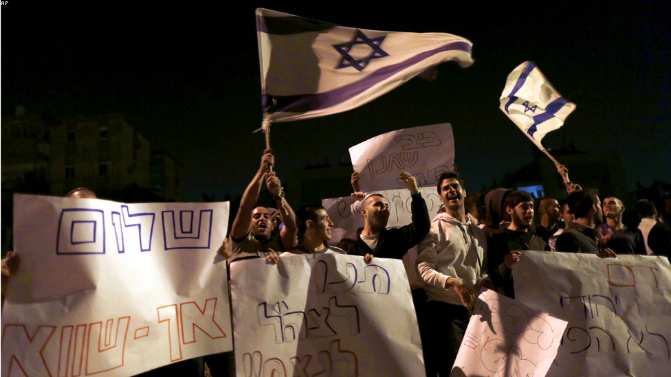 كريات ملاخي، جنوبي اسرائيل - اسرائيليون يعترضون على اتفاق وقف اطلاق النار.