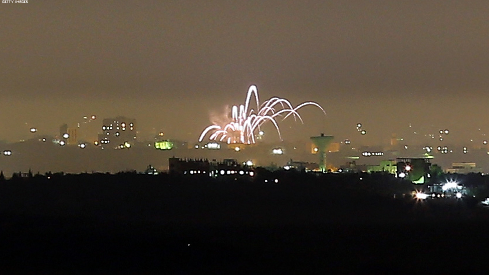 غزة - العاب نارية في مدينة غزة.