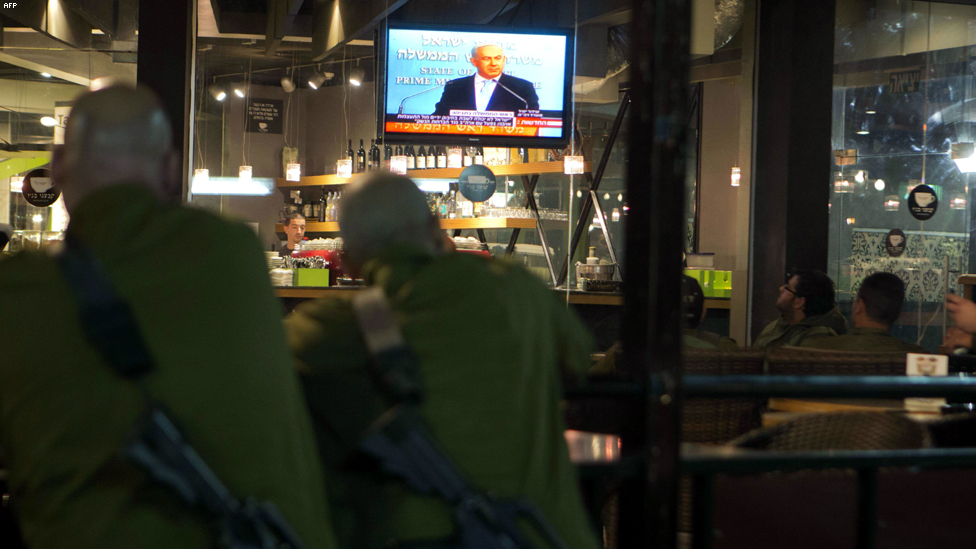 ياد مردخاي - جنود اسرائيليون يتابعون كلمة رئيس الحكومة بنيامين نتنياهو مساء الاربعاء.