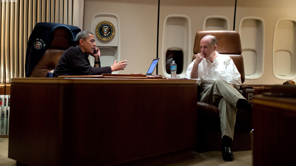 الرئيس الامريكي باراك اوباما يتحدث هاتفيا مع نظيره المصري محمد مرسي وهو على متن الطائرة الرئاسية.