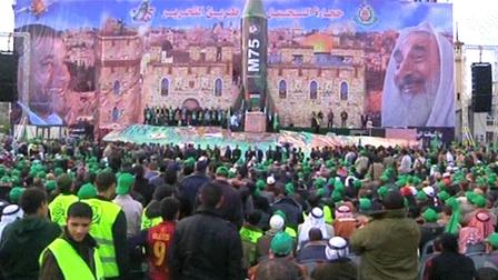 وأقيم مسرح كبير في مدينة غزة مع نموذج ضخم لصاروخ من طراز (إم 75) الذي أطلق على تل ابيب والقدس خلال أعمال العنف بين حماس وإسرائيل.