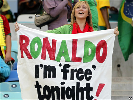 25/6: مشجعة حسناء تحمل رسالة "خاصة" للنجم البرتغالي كرستيانو رونالدو