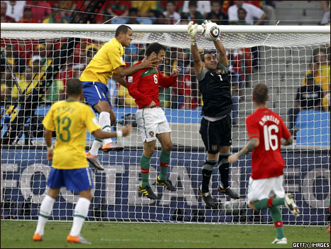 25/6: الحارس البرتغالي ادواردو ينقذ رأسية اللاعب البرازيلي فابيانو