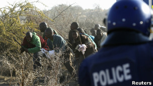 وفتحت الشرطة النار على عمال المنجم الذين كانوا يحملون اسلحة بيضاء متنوعة بعد أن رفضوا الالتزام بالتخلي عن أسلحتهم.