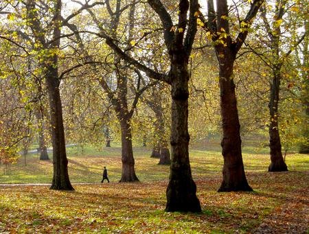Man walking through Green Park one fine autumn morning.