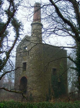 A disused engine house at Porkellis, Cornwall on a gloomy winters day.