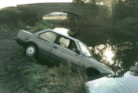 I came across this carelessly parked car one Sunday morning while walking along the Union Canal towpath near Broxburn, West Lothian. Presumably stolen the night before?
