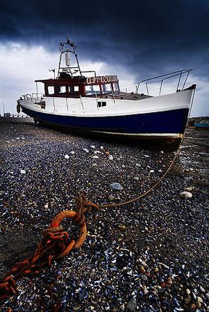 African Queen Taken in Rhos on Sea, North Wales. This fishing boat called the African Queen was sat in the dock where the retreating tide had left it. I thought this was quite apt as the fishing industry is in decline in this area. As I was setting up the picture the weather took a turn for the worse and the heavy rain cloud you can see swept over me.
