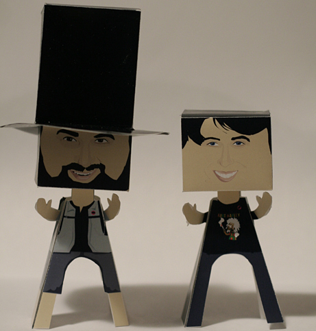 Thanks to Sally, you can even print outthe templates, then cut them out and make yourself mini Adam and Joe-men. Adam and Joe-men are to summer what Snow-men are to winter, you see? Then you can operate them like little puppets while listening to the show, and it'll be as if tiny, square headed, better looking cardboard versions of us are right there in the room with you! It'll be like a dream come true, so long as you have at some point in the past dreamt that we were very small, hollow and cardboard. But please do not touch your little cardboard men inappropriately, as they might well act like tiny voodoo dolls, and get us overexcited.