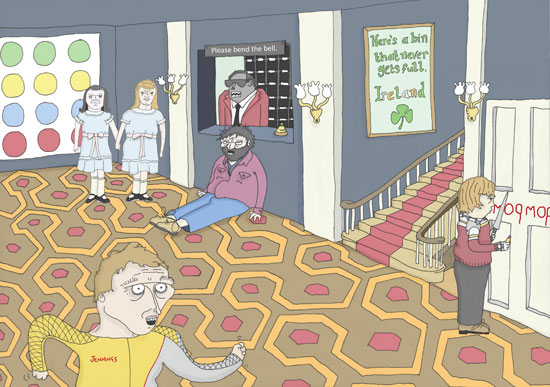 Adam and Natty have gone to spend a lovely weekend at the Overlook hotel. But as Natty does a spot of drawing, Adam finds the receptionist's shtick hard to bear.